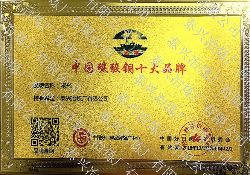 泰興冶煉廠有限公司(原泰興冶煉廠),始建于20世紀(jì)70年代初,現(xiàn)位于江蘇省泰興經(jīng)濟(jì)開發(fā)區(qū)。歷經(jīng)40年的創(chuàng)新驅(qū)動、穩(wěn)健發(fā)展,已成長為一家專業(yè)生產(chǎn)堿式碳酸銅、高純電鍍氧化銅、氧化亞銅、氧化銅、無水硫酸銅、海綿銅粉及副產(chǎn)品聚氯化鋁(凈水劑)等系列無機(jī)鹽產(chǎn)品及處置不含氨的氯化銅蝕刻液(HW22)15000噸/年的“國家高新技術(shù)企業(yè)”和地方性骨干企業(yè)。公司總占地面積3.7萬平方米,建筑面積4萬平方米,注冊資本2088萬元,固定資產(chǎn)1.2億元,年產(chǎn)值約7億元。